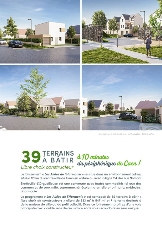 Le lotissement Les Allées de l'Harmonie I est composé de 39 terrains libres choix du constructeurs de 333 à 548 m².
